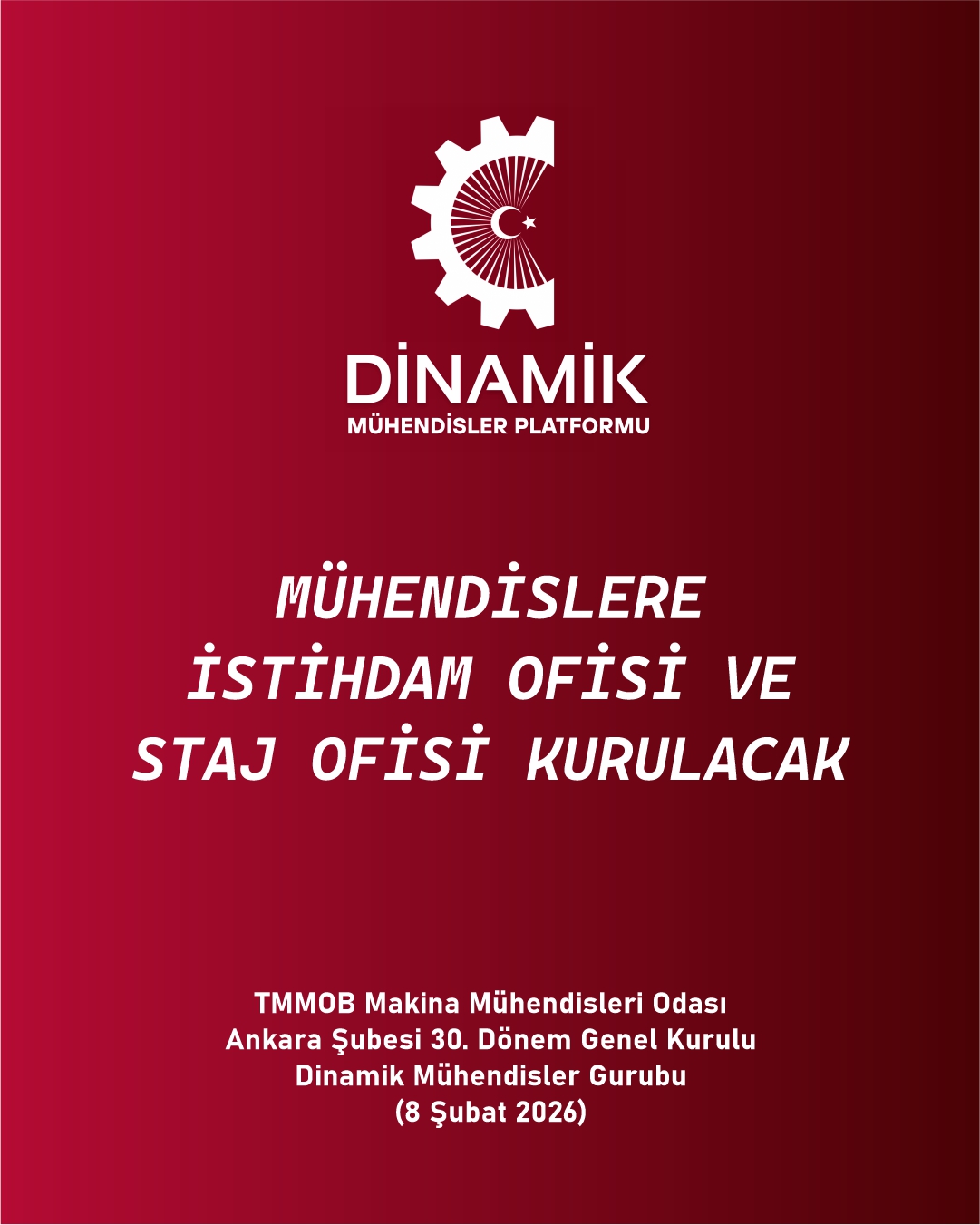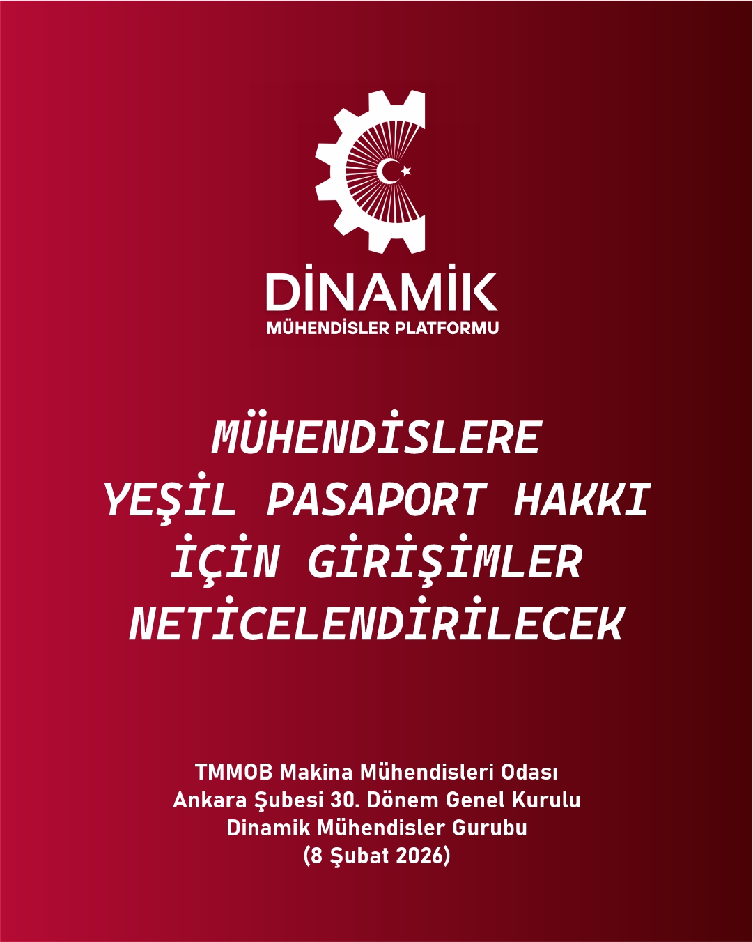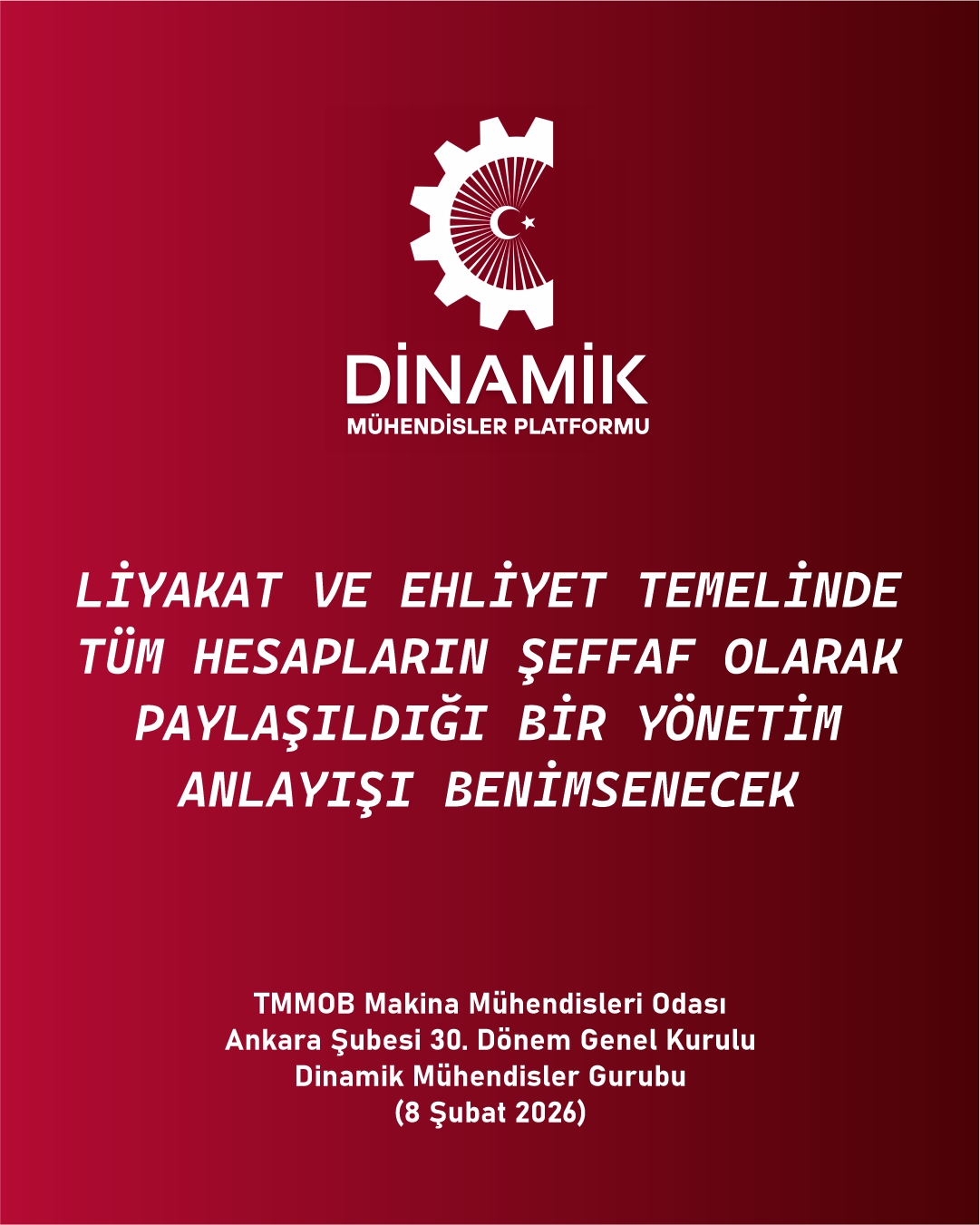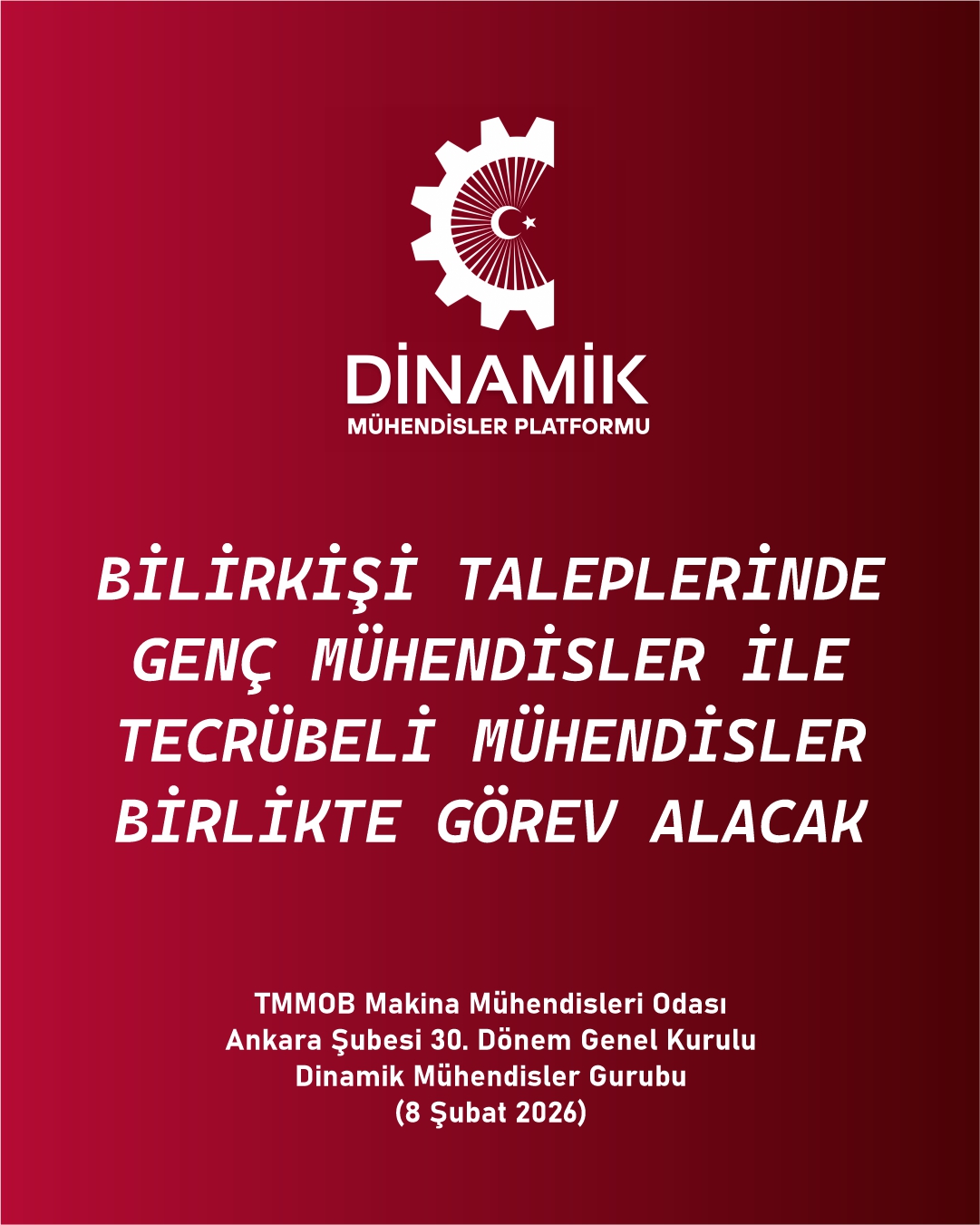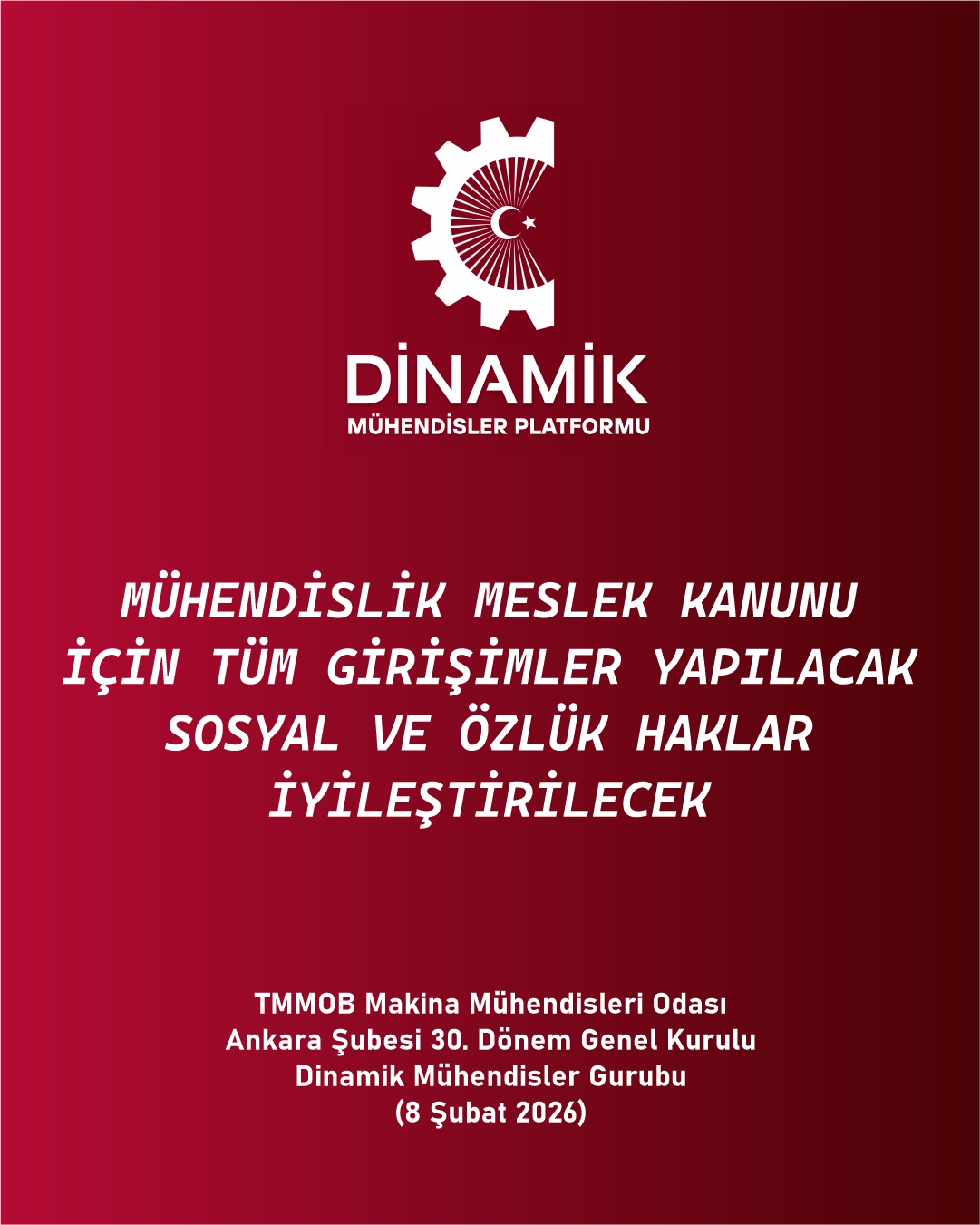 TMMM Makina Mühendisleri Odası Ankara Şubesi 30. Genel Kurulu, Seçimler (8 Şubat 2026) Dinamik Mühendisler Platformu olarak Vaatlerimiz - Projelerimiz