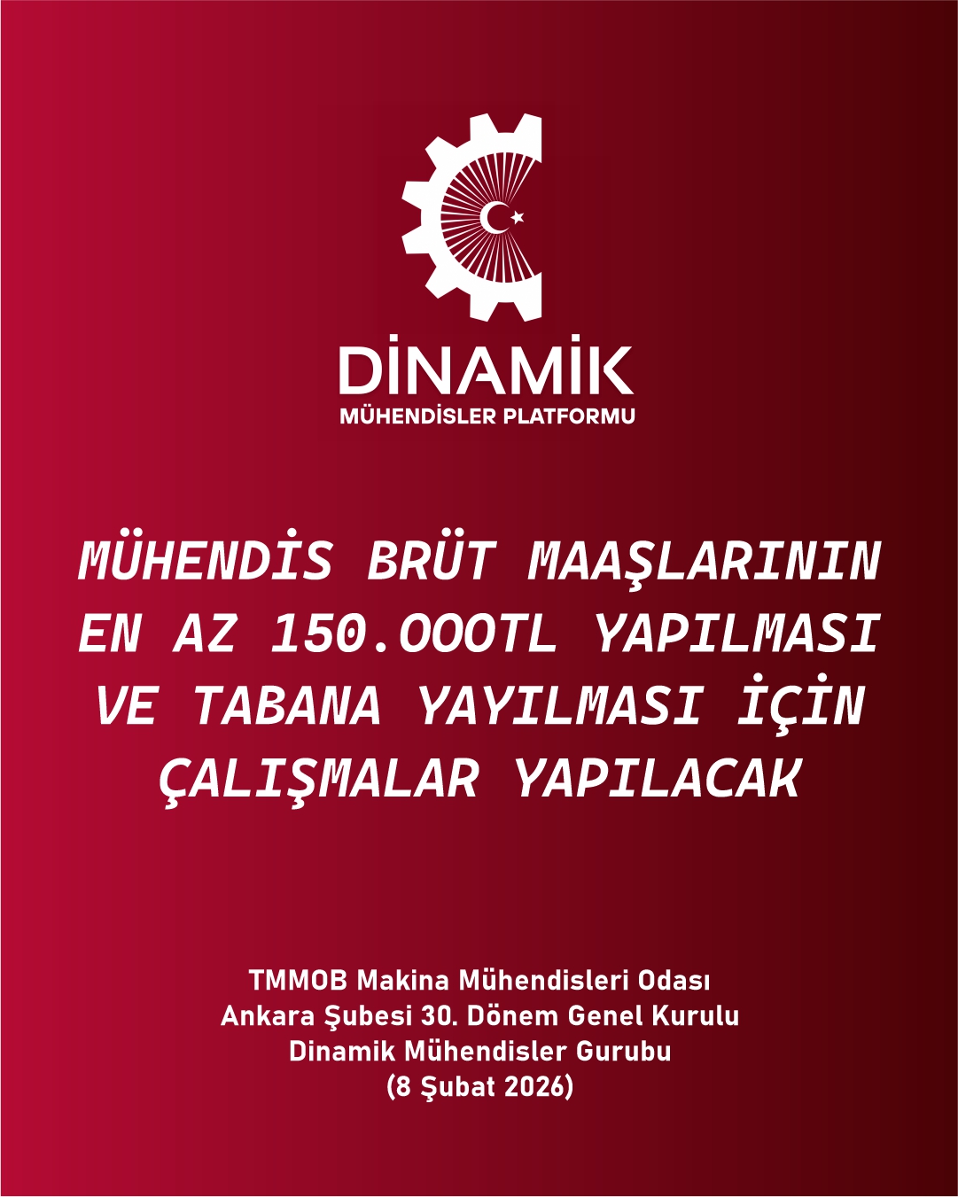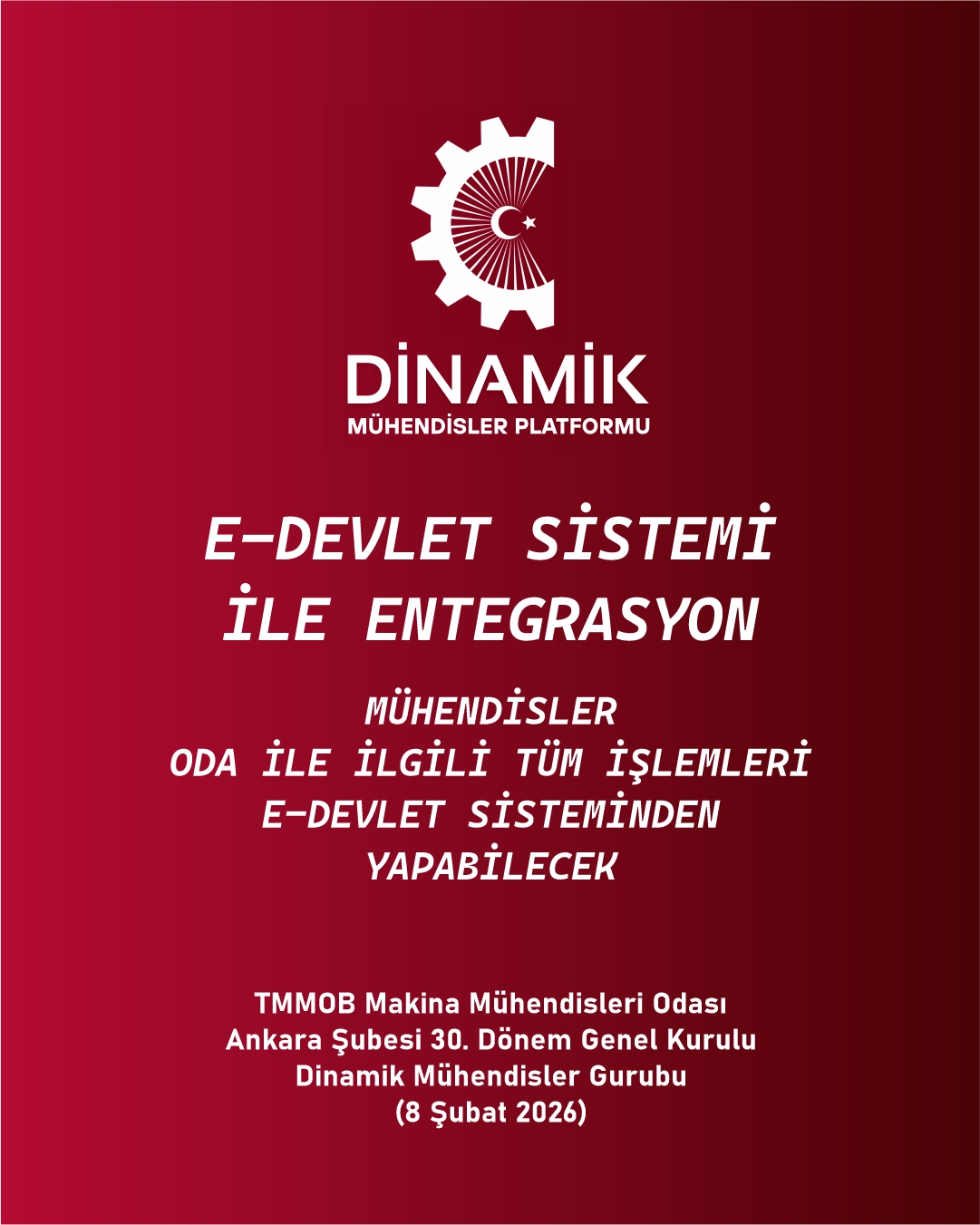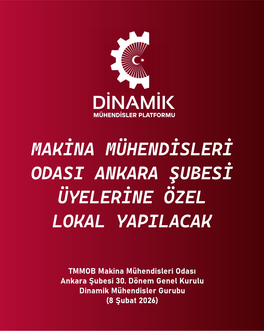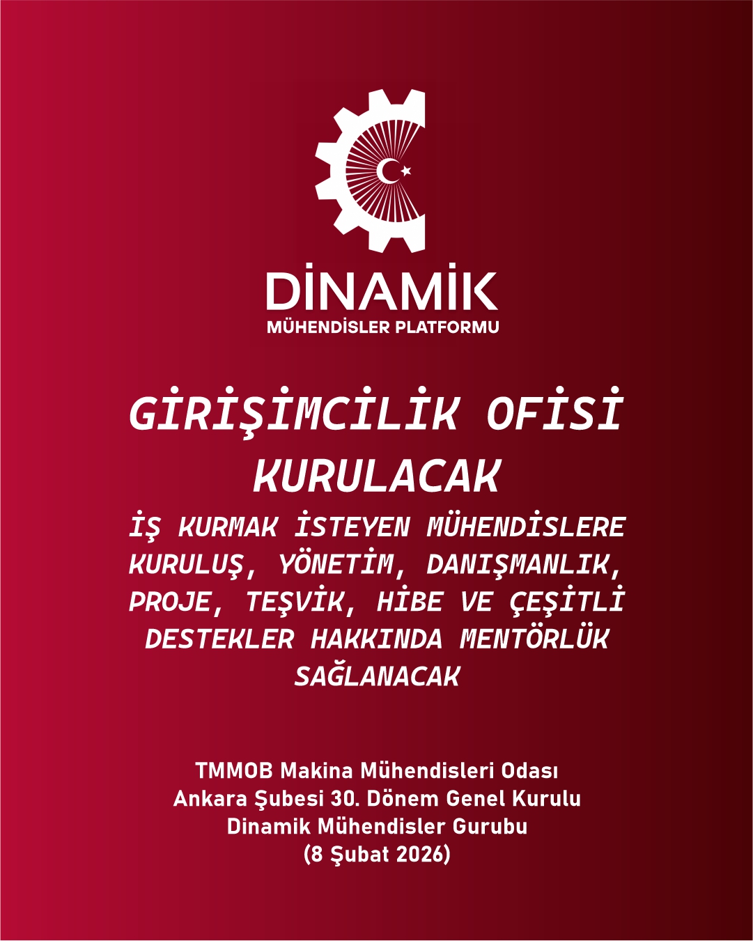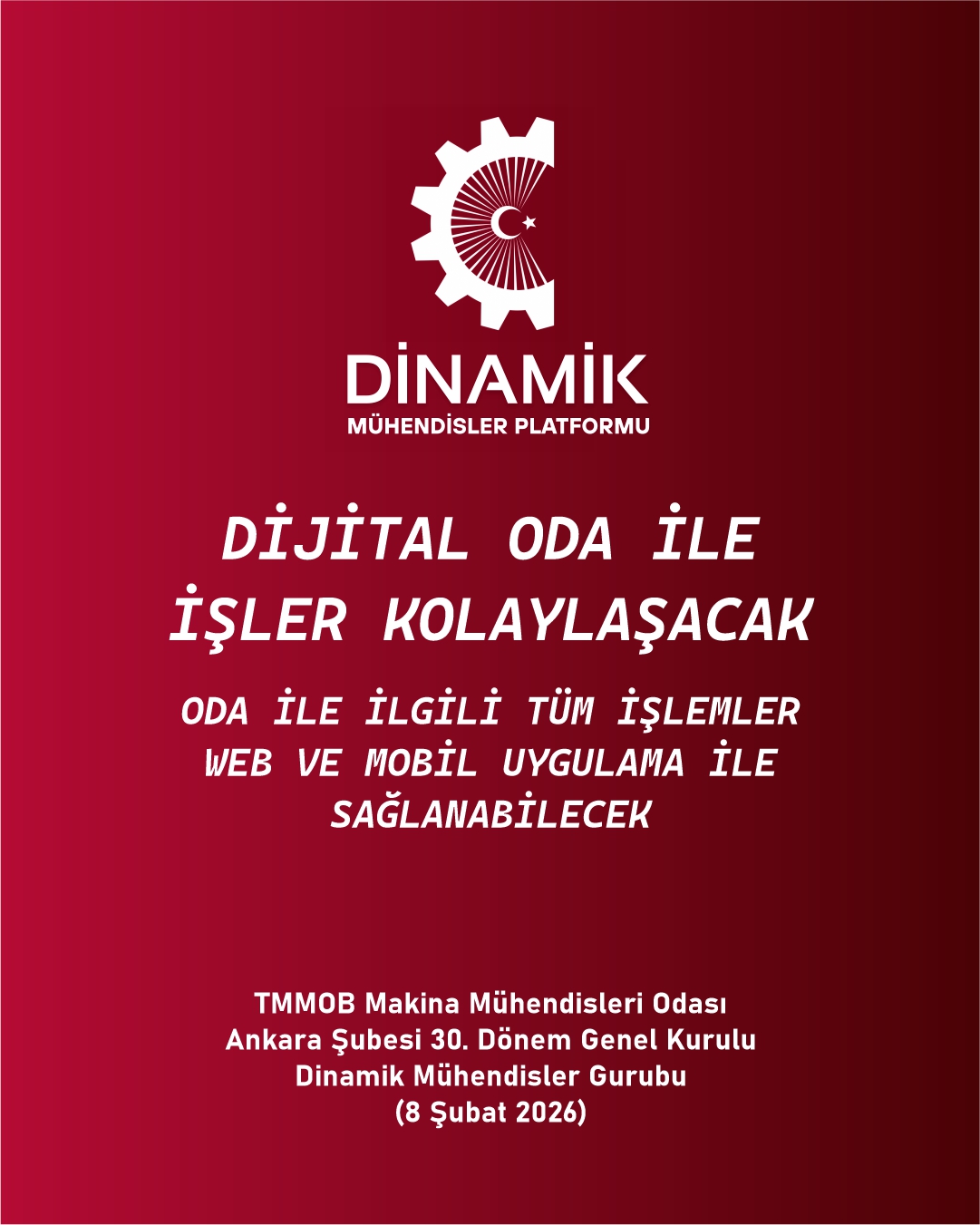 TMMM Makina Mühendisleri Odası Ankara Şubesi 30. Genel Kurulu, Seçimler (8 Şubat 2026) Dinamik Mühendisler Platformu olarak Vaatlerimiz - Projelerimiz
